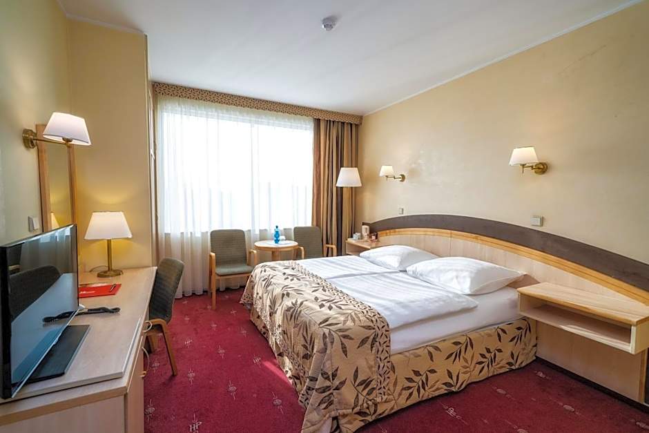 Apartament (city view) is 527 square feet and includes a king-size bed 150-183 width plus extra beds on demand, desk, satellite tv , hairdryer, tea and coffee making facilities , safe, bathrobes, and slippers and is Wheelchair-accessible.